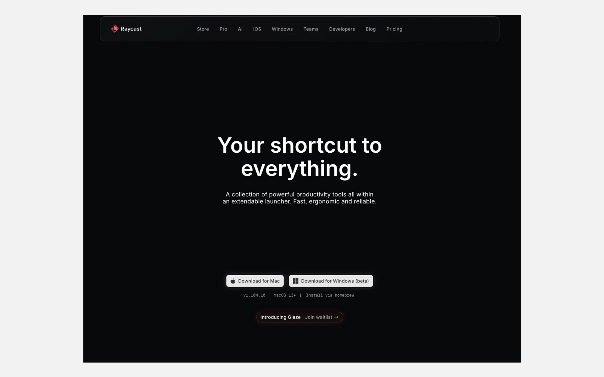 Raycast – інструмент для швидкого запуску команд, пошуку і автоматизації. Функціонує як «Spotlight для розробників», але з розширеною функціональністю. Основні можливості: